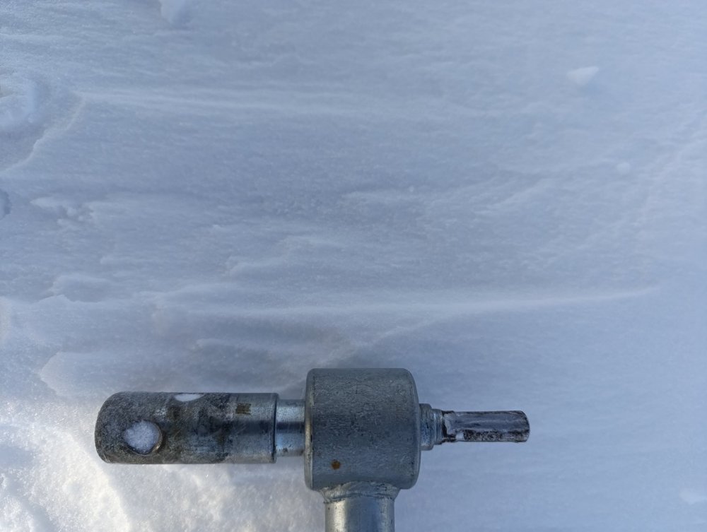 Насверлил лунок(пришлось выдвинуть телескоп на одно отверстие), лёд метровый,зарядил три жерлицы,а сам присел под кустик!