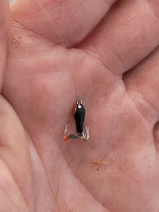 Ловил на уралку 0.5 гр с подсадкой мотыля, опарыша, мормыша разок покачал. 3 шт на опарыша, 6 шт на мотыля. Безмотылки и не тряс толком, минут 15... Рука болит трясти... 🤣🤣