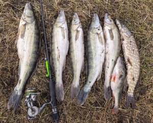 Окунь брал только утром, лично я после обеда не поймал никого. Были, конечно, редкие поклëвки и один обрыв после обеда, но, в целом, глухо. Вечерней активности не было, хотя полосатый под лунками присутствовал.