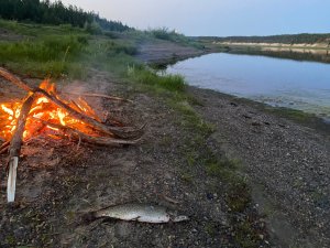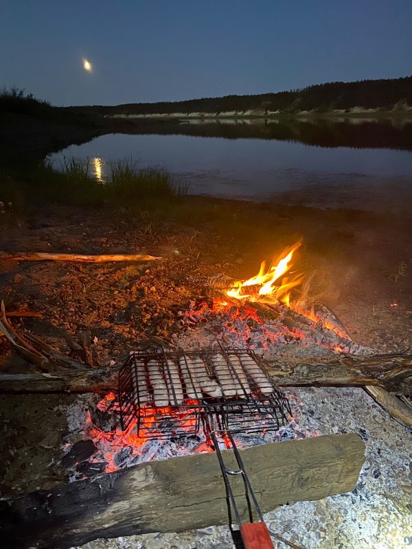 Костёр на берегу. Уже заканчивается наше время в Сунтаре, ещё пара вылазок на реку и в Новосиб. Теперь всегда немного грустно. Забрались подальше до ванночек на реке. Места интересные, в заводях сидят щуки.