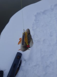 Приманку решил выбрать в более натуральном цвете и не прогадал т. к у напарника на кислотные цвета рыба просто убегала