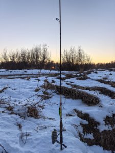Недолго, с 15 часов до 18. Кидать толком некуда. Одну дёрнул, 1100 гр. И больше ни одной поклевки. Джиг, воблер, балансир в отвес. Поклевка на зелёную резину 2.4 дюйма на 4 гр.