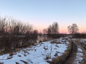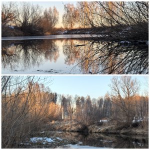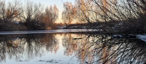 Сегодня с сыном Ромкой решили поехать поискать лёд на заливах ОВХ. Проехали несколько заливов, но там льда не было. На очередном подветренном участке обнаружили лёд. Вышли мы на этот лёд и он на удивление он оказался ходовым 5-8 см. Попробовали порыбачить под камышом и по акватории, но рыбку не обнаружили. Решили поехать ещё поискать участки со льдом. Приехали мы в устье реки Махалихи и попробовали выйти на лёд. Лёд здесь 4-5 см, местами насторожено потрескивает, но не валится. На льду 1,5-2 см воды со снегом.