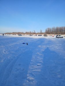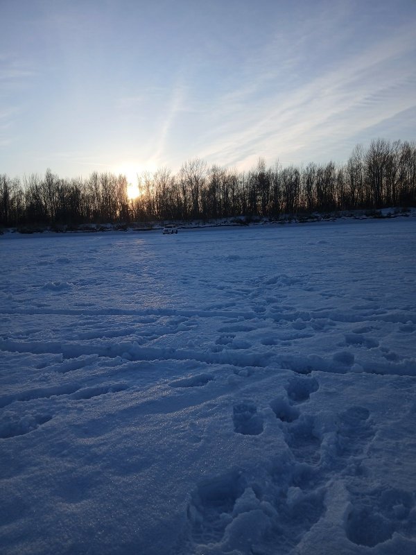 Сегодня, 14 февраля в одно рыбацкое лицо "бороздил" акваторию Тань-Ваня. С дамбы ГЭС пустился как рысак искать " полосатого друга.
