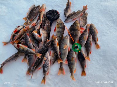 По итогу у меня 25 хвостов , из них лишь 8 окуней. У напарника 11 хвостов ( 2 окуня). Как- то так.