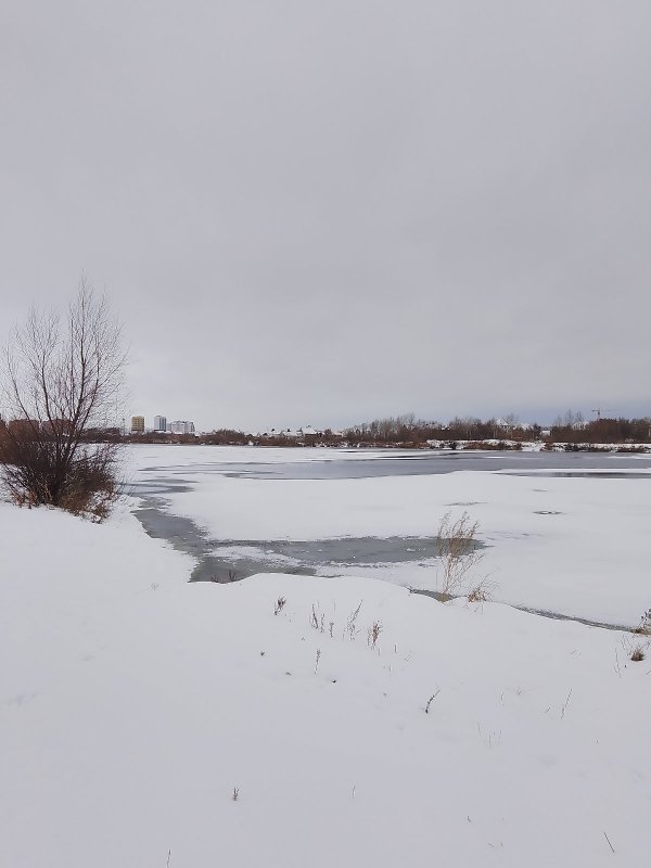 Возле берега рыбы не нашел и кайт серфингисты учатся летать... Шел пешком 2 км примерно в белую пустыню по накатанному следу снегохода. Идти тяжко по целине, без лыж. Иногда водичка под снегом, проваливаешься 30см. Нашел точку ямку первый раз 2 окуня уговорил, второй раз судачок карандаш на мормышку. Трудовая зимняя рыбалка! , когда же лето уже )))