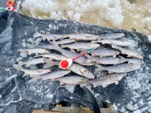 Пройдя первый круг по лункам было поймано всего 3 рыбы, сделав докорм на второй круг ( кормушку уже открывал в метре от дна). Результат уже получше (но некоторые лунки не работали совсем на глубине 4,5м).