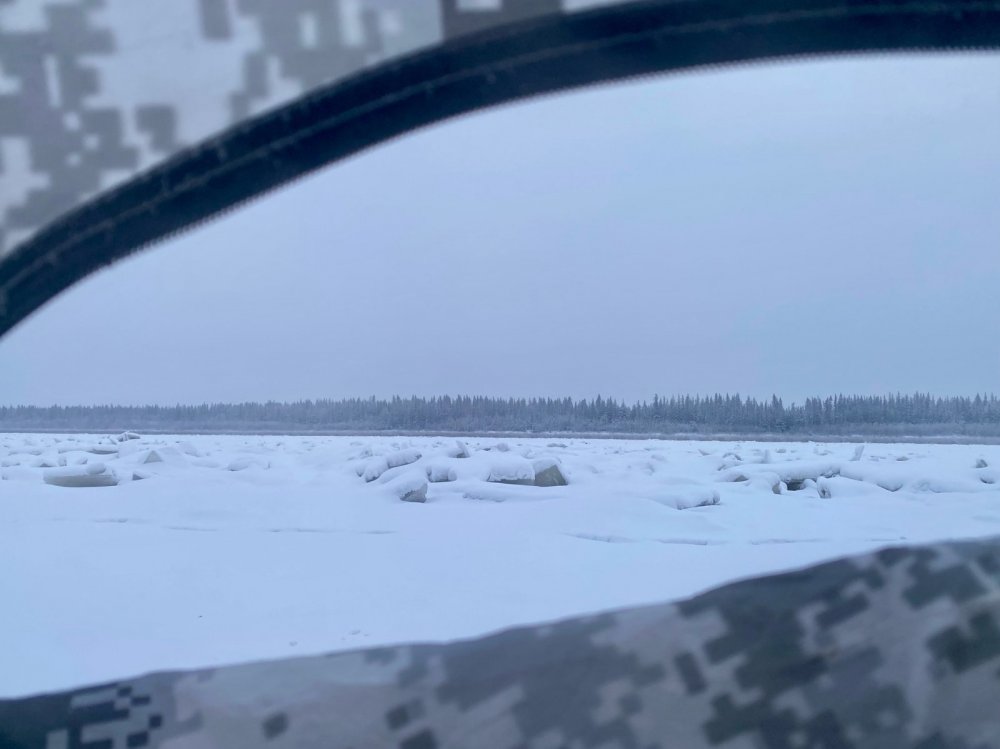 Наледь сильная на реке. Снега много навалило, давит воду.