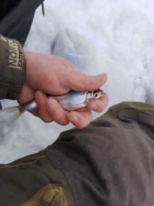 Вот так и просидел до восьми часов и успел поймать 12 штук,от 100 до 200 грамм!