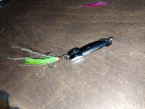 По итогу поймал трёх окуней на "чёртика", три сороги + 1 ерша на одного мотылька. Леска 0,1. Все поклёвки в метре от дна на лютую проводку.