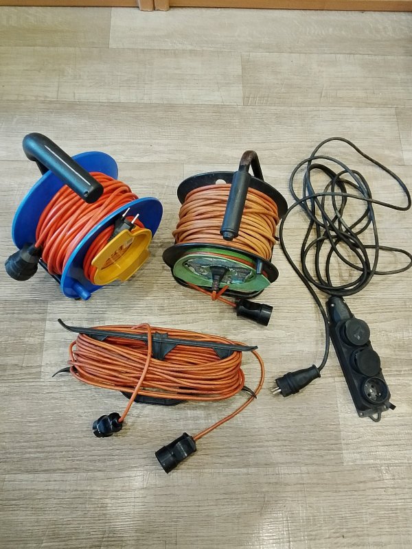 У меня оранжевые и на катушке 35 метров и на мотках 20 метров... Всё нормально... Работаю сварочным аппаратом греется ну не горит... Правда выматывать надо полностью... бывало что автомат выбьет ну не часто... Брал в лемано про...