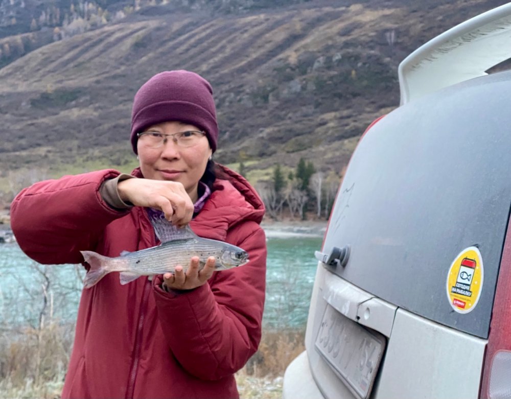 Поймала, настойчиво и упорно рыбача, самого крупного хариуса в нашем рыболовном стаже. Осень, Катунь за Куюсом, в комменты ещё фоток места скину.