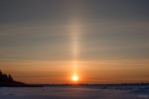 Февраль, в царстве холода солнце начинает напоминать о своей силе быстрыми и яркими закатами. Сейчас оно спрячется за деревьями и в лесу станет холодно, нужно быстрей выйти на реку, там морозец доберётся до нас позже.