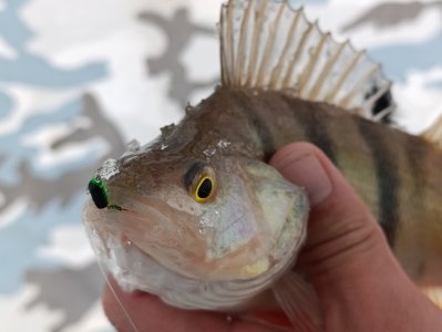 В приоритете безмотылки, сырный кубик 0,5 грамма отработал на ура. Дикая тряска при интенсивной проводке давало результат. Но, хорошее быстро кончилось, в течении часа окунь испарился не только у меня под лункой, но и во всей округе. Дальнейшие поиски без результата. В общем, вся рыба с одной лунки и за час.