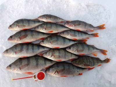 Вести Новосибирская областьВсем привет. Очередная рыбалка проходила на Обском водохранилище а точнее в его низах. До первой точки дошёл быстро, благо наст держал, подморозило. Бурю первую лунку, глубина 1 м. подо льдом, рыбы нет иду дальше и смещаюсь на 2 м. а вот и стая полосатых, запрыгиваю в палатку и первым в бой пошёл чёртик, тишина. Пробую на гвоздик с латунным шариком, с первой проводки поклёвка да какая, от неожиданности аж вздрогнул, достойно сопротивлялся, первый есть. Следом сход, опять поклёвка, с ударом. Хорошо мормышку съел, не сошол бы. Приятный размер. Трясу, тишина, опускаю камеру а стая начала двигаться, это плохо. Поиграл в догоняшки, немного успел поймать, уже на другие безмотылки, потерял стаю. Пошёл на другую точку, глубина 4 метра, опускаю камеру а там его, дна не видно, всё в рыбе. Первая проводка на чёртика , есть контакт, мормышка в шахте а сопротивлялся как, приходилось леску отдавать чтобы не оборвал снасть. Ловлю ещё парочку, опять затихло. История повторяется, стая двинулась, дальнейшие уговоры на поклевку ни к чему не привели. Улов хоть и не велик но приятный. Вот такая получилась рыбалка.