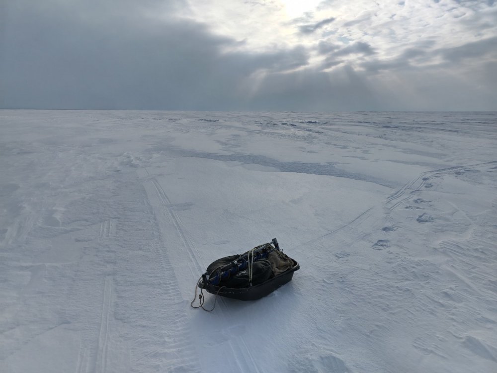 Рыбацкие изыскания начались около 10 утра. Акватория пустынна и заснежена. Ветерок прям бодрил. Передвигаться сложно, перемёты значительны, наст валится, но воды под снегом нет. Лёд сантимов 80 "железно"!