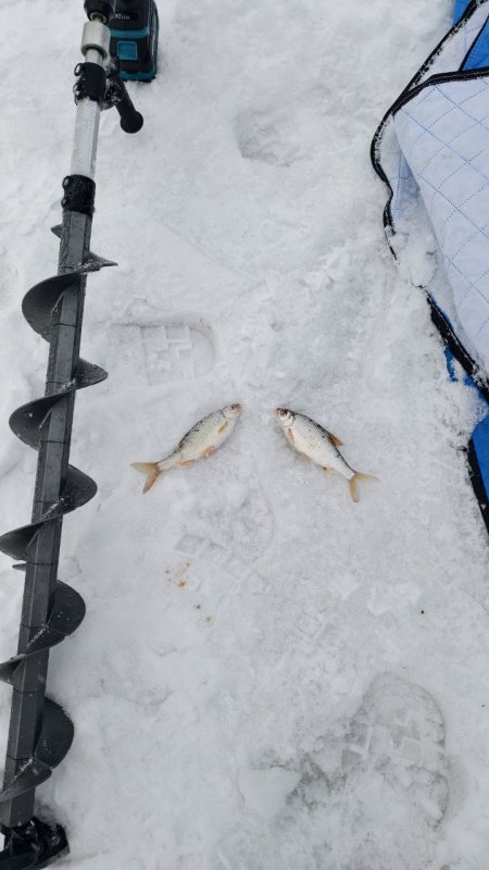 На 10-ой лунке бель была найдена, примерно в 50 м от палаточного городка ,ближе к входу в канал. Быстрый закорм мороженными остатками мотыля, мормыша и дунаева. Клевать начало сразу! Сорожка под сотку , ну думаю сейчас на 0,085 покайфую , ничего подобного 10-30-50 гр ,на каждую 80-100 граммовую 15 шт мелочи. По итогу всего 4 шт полусъедобного размера , остальное в лунку. Подлещика и окуня не было, зато приходили ерши 20 гр. На крупную уклейку не пошел, хотя знал где она .