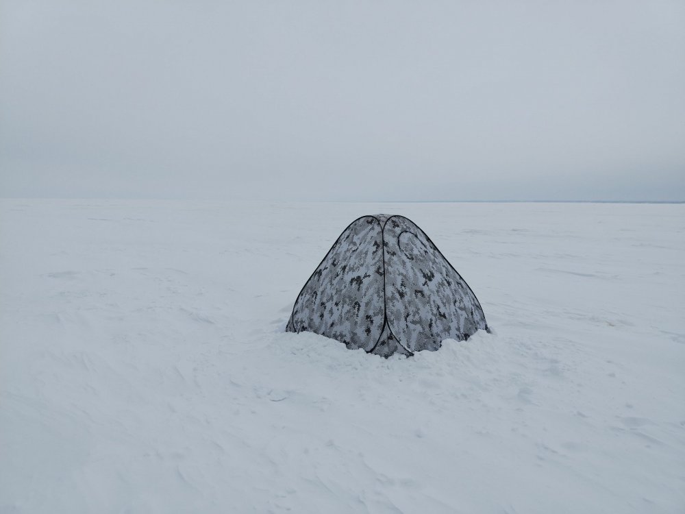 В три рыбацких лица прибыли к 10-00 утра к намеченной цели. Рыбачки уже на льду, сидят в палаточках и пытаются уговорить местного обитателя - окуня.