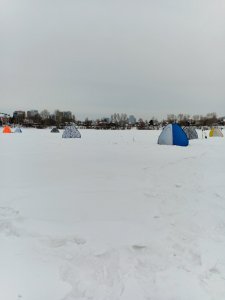 Не мог определиться с местом ловли, а оказалось всё просто: Затон, Инструментальный, ну и Сибирь Арена. Выбор пал на Сибирь Арену, так как я вообще ни разу там не был — новое для меня место. Прибыв на водоём, не зная ни места, ни куда идти, двинул в сторону палаточного городка, который находился правее от спуска — в метрах 800 на глаз.