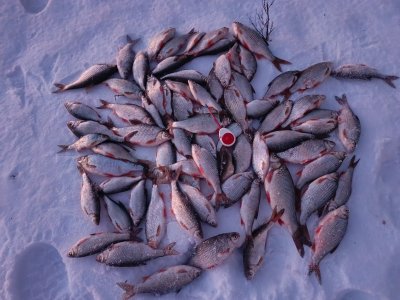 Вести Новосибирская областьВсем привет, сегодня с 9.00 до 12.00, проверил старые лунки напротив домика из пеноплекса, окунь куда-то исчез, да и вообще ничего в камеру не увидел. Пошел к центру , увидел кучку брошенного вчера подлещика грамм по 100- 150 , опустил камеру , а там от рыбы не протолкнуться. Подкормил готовым зимним дунаевским, клевать начало сразу, но только на серебро, золото и никель никак. Поставил две удочки с серебрянными уралками по 0,2 гр, стояк или постукивание по дну, клев отличный ,сорога 30-70 и подлещь 50-100, крупнее не было почему то, штук 40 поймал, отпускал сразу.