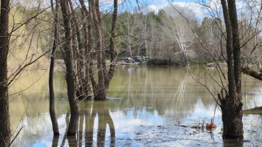 Прибыл сегодня в данную локацию к 9.30. Дорога сухая , но бампер оставить можно легко или зависнуть в полметровой колее, на равчике только раз защитой шкрябнул. Решил доехать до пляжика, а там вода разлилась, но по объездной можно. Заехал на мыс, зная что там с обеих сторон больше шансов занять хоть какое-нибудь свободное местечко. А самое популярное место затопило, вода вплотную к дороге, которая уже подкисает, если раньше там человек 10-15 размещалось, то сегодня 4 рыбака и то двое в забродниках.