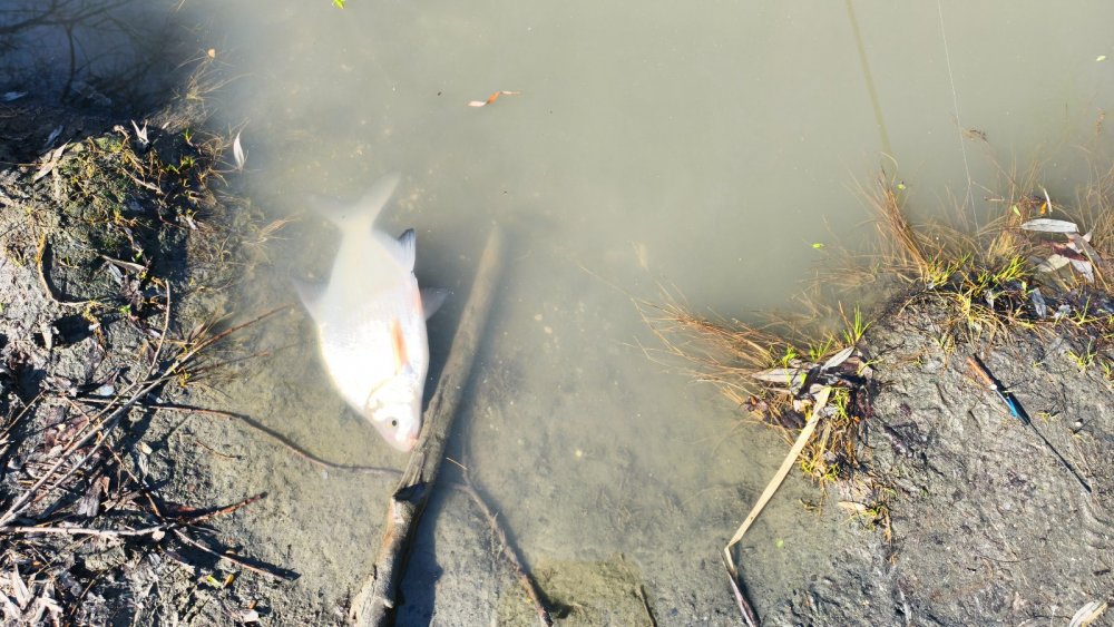 Закармливать пятак особо не стал, думаю и без меня там сильно перекормили рыбу, везде валяются остатки именно каши! Более менее клевать стало после 12.00, когда стало припекать солнце, с 13 до 14.00 прям вообще неплохо. Поводок 70 см похоже совпал с течением, сходов не было, пустых поклевок минимально.