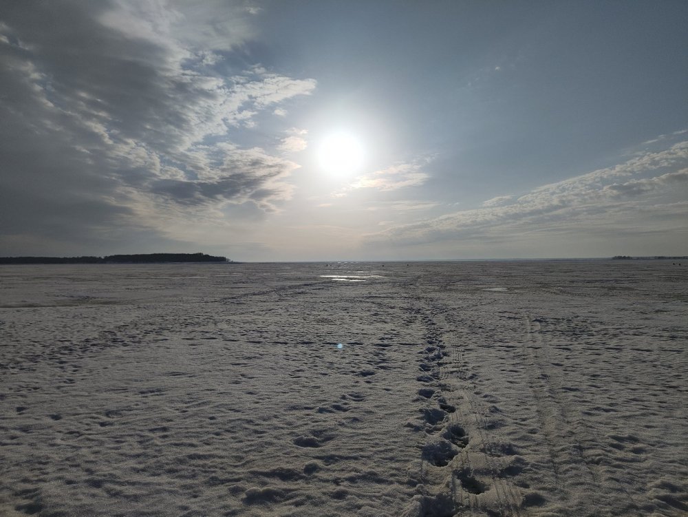 Рыбалку завершили в 18 вечера субботы, сняли комбайны и в сторону базы. Путики все разбили, на льду каша , местами просто плывешь. В воскресенье наш мотопес Тимоха просто бы захлебнулся или переломился😅, хотя с утра стоял морозец, но пока суть да дело, и в обед мы оттуда бы не выехали.
