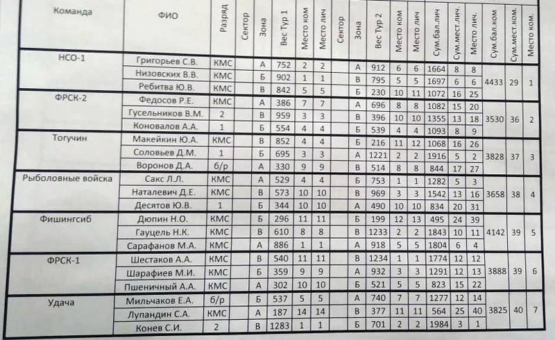 За весь тур поймал всего 5 штук и в итоге занял 12 место. Ребята с команды отловились хорошо оба тура. Мы реально могли занять призовое место. Миша Сарафанов в личке 4-й, чуть чуть не хватило до призов и ему. Обидно, досадно, но, как говорится - бывает...