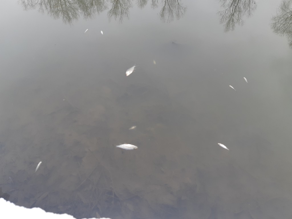 В пятницу, 26 марта появились первые сообщения о том, что на поверхности водоема плавает много мертвой рыбы.
