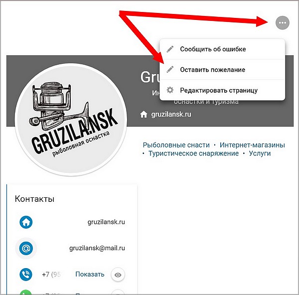 3. Любой владелец компании теперь может влиять на дальнейшее развитие раздела. В меню компании, на вашей странице, добавили пункт «Оставить пожелания». Сюда можно отправлять все свои предложения, пожелания, замечания. Например, каких функций не хватает в бизнес-профиле для получения нужного результата. Предложите ваши варианты. Может нужна возможность добавления карточек с товарами, фотогалерею или блок с отзывами/вопросами от пользователей или что-нибудь еще. Вносите свои предложения.