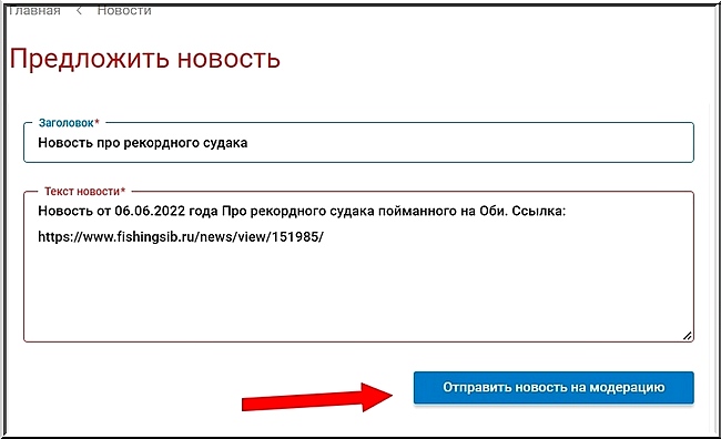 На странице рубрики «Новости» мы добавили специальную кнопочку, по клику на которую откроется новое окно, где нужно ввести краткую информацию - про что эта новость (заголовок и пояснение) и вставить ссылку на страницу с ней. Далее нажать «Отправить новость на премодерацию» и извещение уйдёт на просмотр модератору.