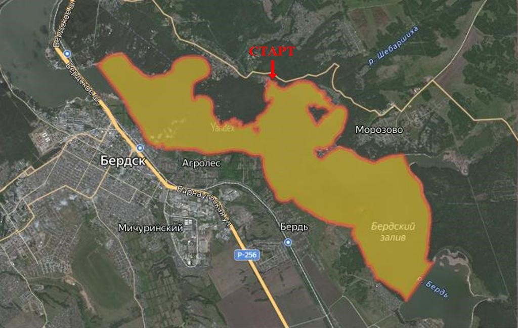 2.3. Зоной проведения соревнований считается: Бердский залив (р.Бердь, 8-20км по лоцманской карте). обозначена на схеме.