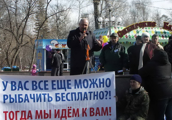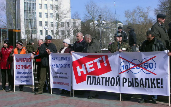 Главными лозунгами на митинге были «Нет платной рыбалке!», «Крайнего в оставку!» и т.п.