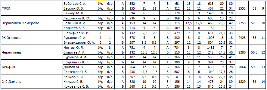 Командный зачет: