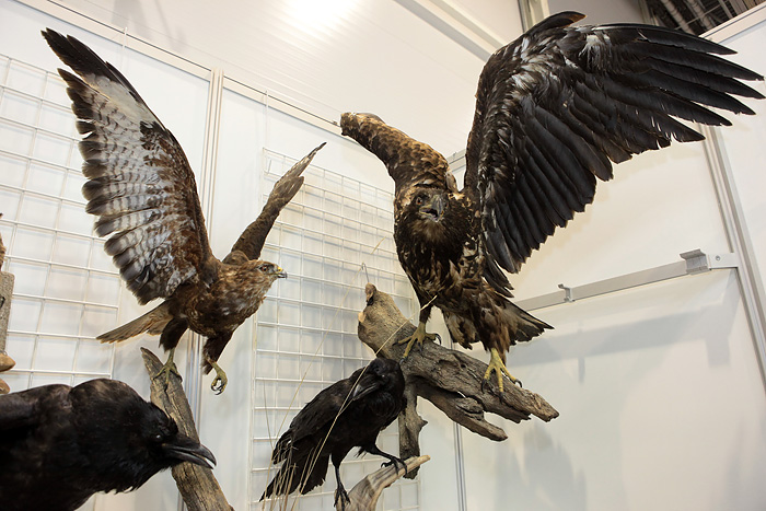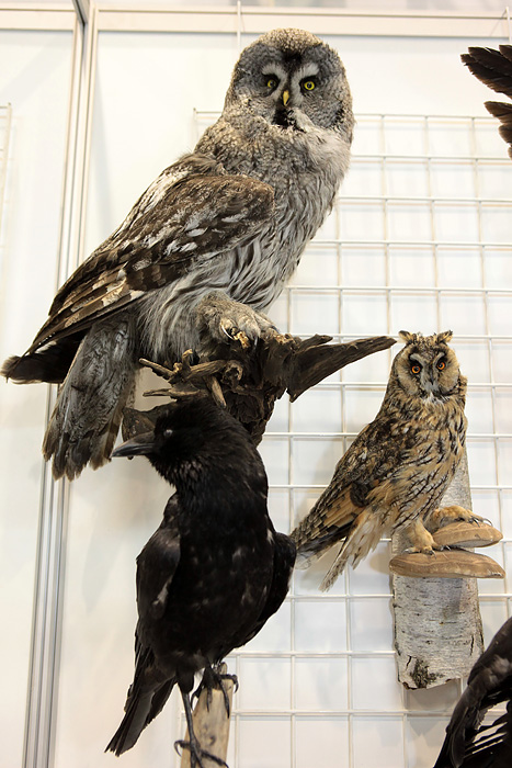 Представлены работы таксидермических студий Владислава Кузьмина, Владимира Чайковского и Владимира Романова.