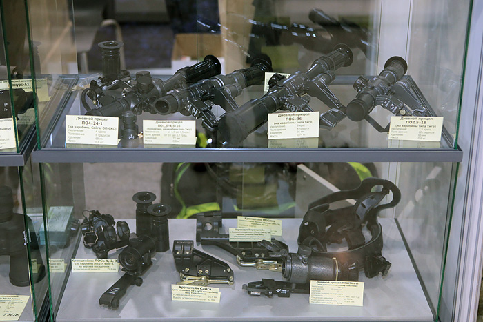 На стенде представлена вся линейка изделий (прицелы, наблюдательные приборы, телескопы, различные аксессуары) выпускаемая предприятием, а также новинки, такие как: ночной прицел ПН23, двухдиапазонный лазерный целеуказатель ЦЛН-2К, ночной наблюдательный прибор ПНН-14М, ночной прицел ПН-19К-3 с новым узлом введения поправок, и ИК-осветителем с изменяемым по направлению лучом и т.д.