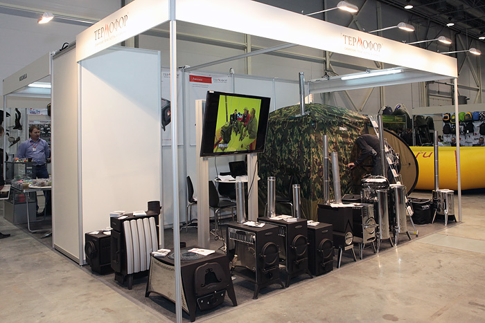 На выставке компания представляет портативные походные печи для охотников и рыбаков, мобильные бани, а также мангалы и коптильни. Все портативные печи имеют компактные размеры и удобные чехлы для транспортировки.