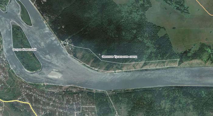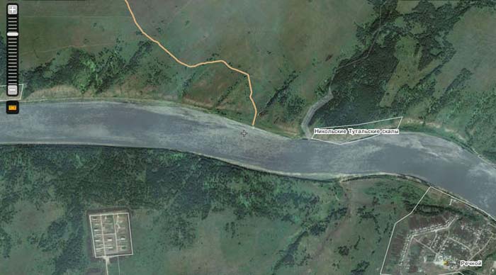 Верхняя точка зоны соревнований. Никольская речка, или верхние Тутальские скалы. Далее вниз по течению (влево) шесть км. До острова Каменский, что за поворотом реки на север.