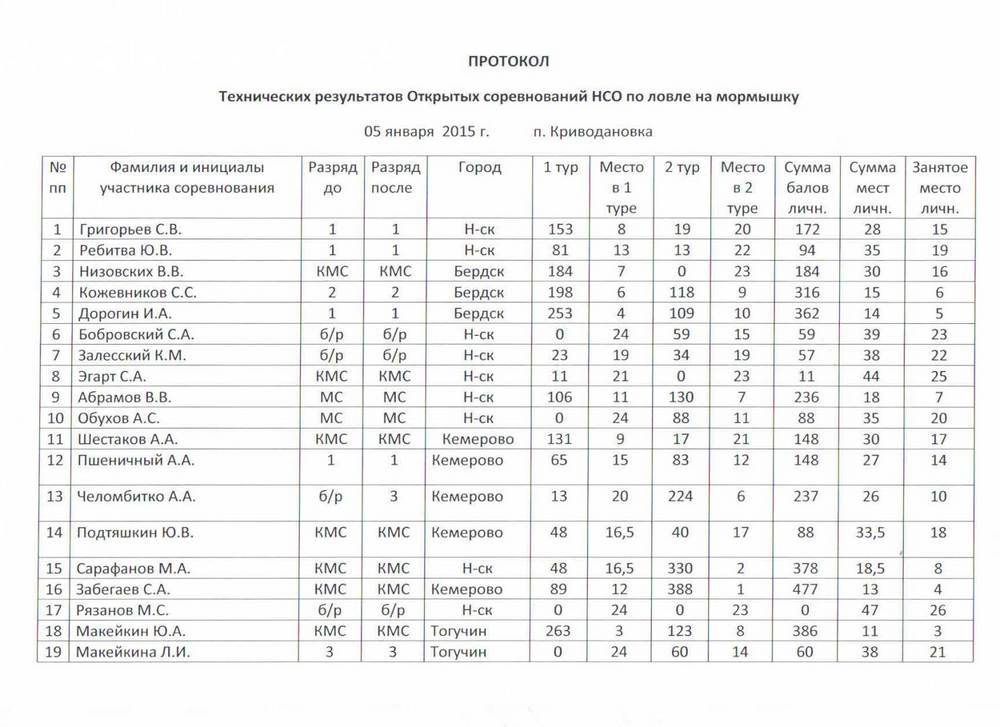 Итоги первых новосибирских совернований в 2015 году