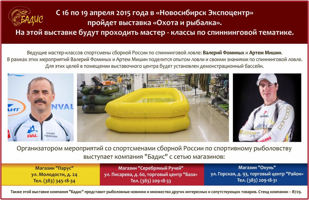 Мастер-классы по спиннинговой тематике пройдут с 16 по 18 апреля в "Новосибирск Экспоцентр"