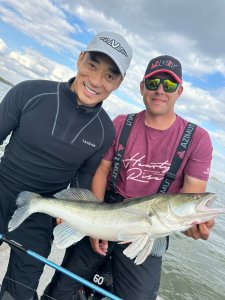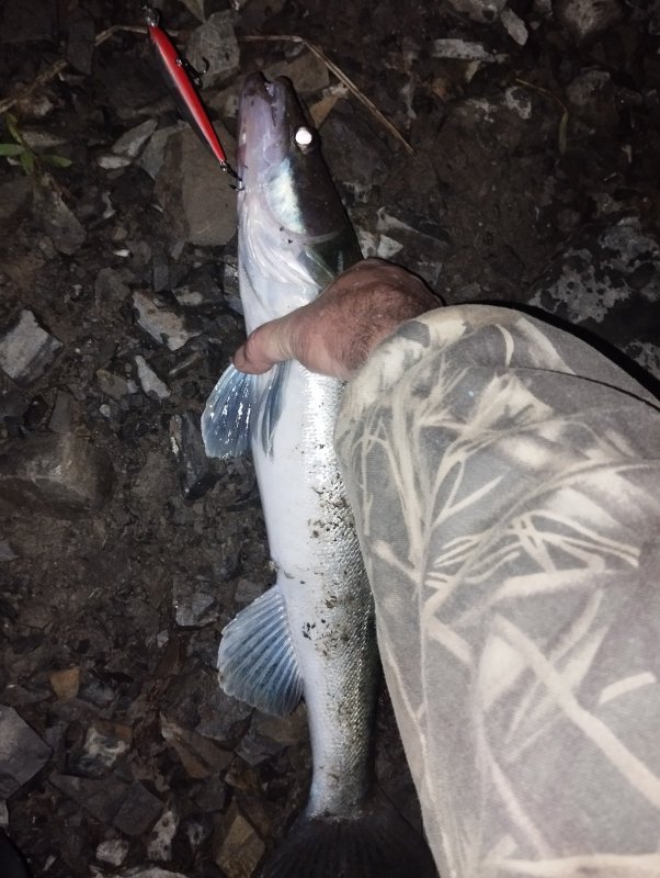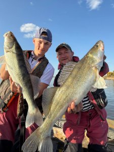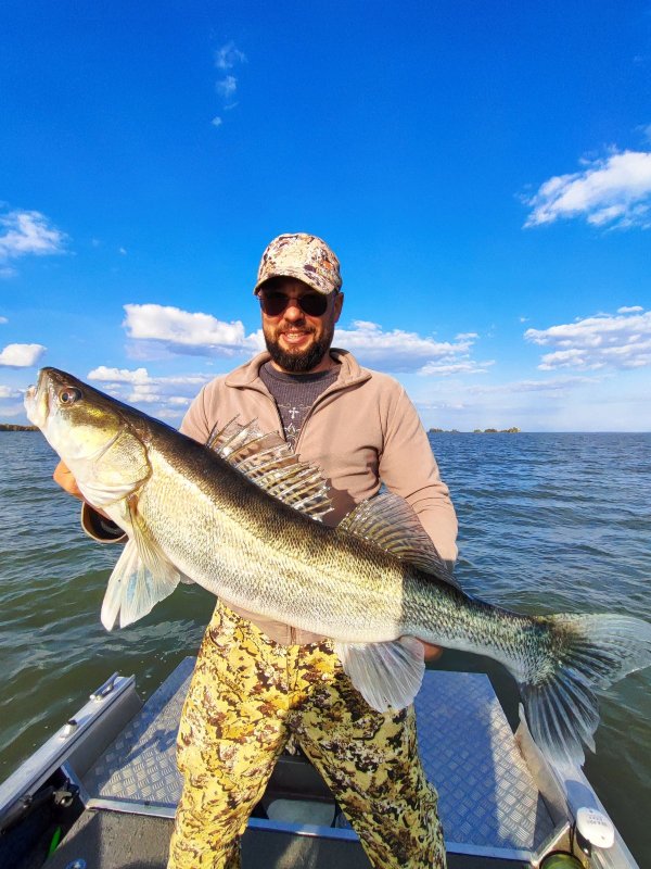 Четвертый день мы решаем по той же тактике ехать в коряги до рассвета, но щука что называется «не вышла» :) Потом проверяем судачий район, а судак тоже не клюнул. Добираем мелкую щуку в корягах и на этом всё. Плюсом у нас ломается шестеренка электромотора и он выходит из строя, долавливаем последние дни рыбалки с обычным якорем)) Вечером меняем район и едем на щучьи пески, и там Данила ловит маманю на 8200! Мне меньше улыбается удача, такая же щука клюет сначала 6 раз мимо, а потом и вовсе уходит, ловлю по итогу одну двушную щучку, тоже приятно)