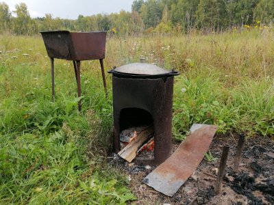 В обед как обычно разогревали кашу с тушёнкой, вообще всегда стараемся, чтобы было горячее питание.