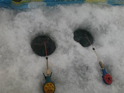 Сегодня были снова на данном озере. Были от елок, на глубине, метров 700 от берега. Ловился в основном карась, попадались и окуня, но какие(!). Ловил на коброчку с подсадкой шкурки окуня. На нее клевало все, и карась и окунь. Кстати в этом году карась ведет себя непредсказуемо, клевал и на голую обманку, и в метре отодна, и на интенсивные окуневые проводки. Прикармливал мормышем. В общей массе поймал кг.15. На фото- на одной из лунок. Всем удачи.