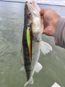 Хватал лучше темно-зеленую муху под бикараса с люрексом.