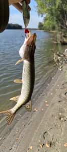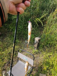 Окунь был, вот именно "Был", грамм 400,когда я взял его в руку, он дрыгнулся и своими колючками уколол руку! 😕