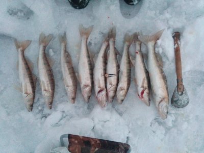 Решили изначально поехать на Чебачье. Приехали часов в 10. Думали- народ уже определился, ловят, не нужно будет рыскать, искать. Ага, дулю. Немногочисленные рыбаки сидели в основном вдоль камыша. Улов в основном маленький микронано окунек, пару штук видел "оковалков", грм. по 250. Решили рвануть на Красное. Там по разговорам, кто то, где то типа ловил хорошего окуня. Народ сидел по всему озеру. Кучек рыбы ни у кого небыло, так, единичные карасики и небольшие окуньки. Забурились ближе к противоположному берегу. Лично я сделал лунок штук12. Прикормил и мормышем и отрубями, и сделав по ним пару кругов, не увидел ни одной поклевки. Созрела очередная мысль рвануть на Благодатку, через протоку. Только выехав с протоки к Сопатому, повернули вправо, метров 400. Тут сидел редкий народ. Ловили небольшого карасика и окунька. Набурив 5 лунок присел и я. Кормил и мормышем и отрубями. Итог штук 30 карасиков и пяток средних окуньков. Ну а по разговорам знакомых, можно сделать вывод: Благодатка потихоньку затихает, хватит, покормила карасиком и хорошим окунем. Ну, а может и погодный фактор. Главное день провели хорошо, погода отличная. Всех с наступающим НГ. Удачи во всех делах. (Фото ни делал, нечем хвастать.)
