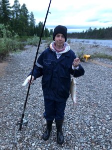 Время подошло к вечеру, нужно возвращаться к машине, решили что пойдем без рыбалки, не хотелось бы выходить через тайгу на лыжах без фонариков, весь улов пришлось нести мне на пятерых поймали сорок хвостов хариуса, до машины добрались за один час десять минут, скинули рюкзаки, как мне показалось у меня самый тяжелый рюкзак, почистили лыжи от наледи, загрузили машину и выехали в сторону дома. Уставшие физически, но морально и душевно отдохнувшие на таёжной речушке.