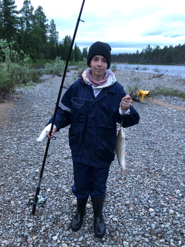Наконец то добрались до улово таёжки где есть спокойное течение подо льдом, как раз в таких местах зимой должен держатся хариус не тратя свои силы на основном течении речушки. Разбираем буры, готовим снасти к рыбалке, так как мы уже не первый раз в этом районе, то я подготовился и взял две дергушки с разными настроями, на одной дергушке настрой называется «стоячка» где на основной леске снизу привязана оливка с петелькой в роли грузика, а сверху на поводках две разные мушки ,одна из них черная переколомина а ниже красная мушка под мотыля, второй настрой обычный «игровой» снизу тяжелая вольфрамовая мормышка а сверху на поводке подвязана мушка, для увеличения шансов поклевки хариуса на мушки поддеваю белого опарыша. Пробурив две лунки недалеко друг от друга, в одну ставлю «стоячку» в другой начинаю активно играть мормышкой, хариус не долго заставил себя ждать и проявил интерес на игру мормышки, поклевка, подсечка и пусть небольшой, но хариусок уже на льду, сразу в нос ударяет запах свежего огурчика, малыша отпускаем подрастать. Продолжаю активную игру мормышкой, а вот уже и на стоячку есть поклевка, подбегаю, подсекаю и довольно приличный как тут говорят едовой хариус на льду.
