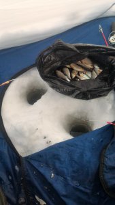 Вырвались с товарищем после обеда по 9 бальным пробкам в Матвеевку. Прибыв на место были опечалены видом, рассчитывали обнаружить чистую воду, но на всех рабочих точках не ходовой припай от 20 до 50 метров.