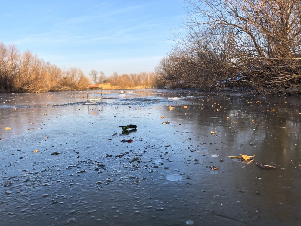 На улице термометр показал по прибытию -12С, протока по которой должны стартовать встала, лед под три см.